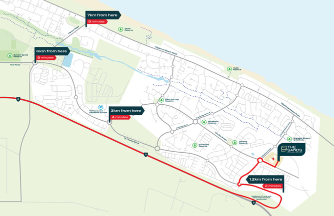 You’ll reach The Sands in no time, with access to The Sands carpark via Stevenson Drive or The Boulevard.